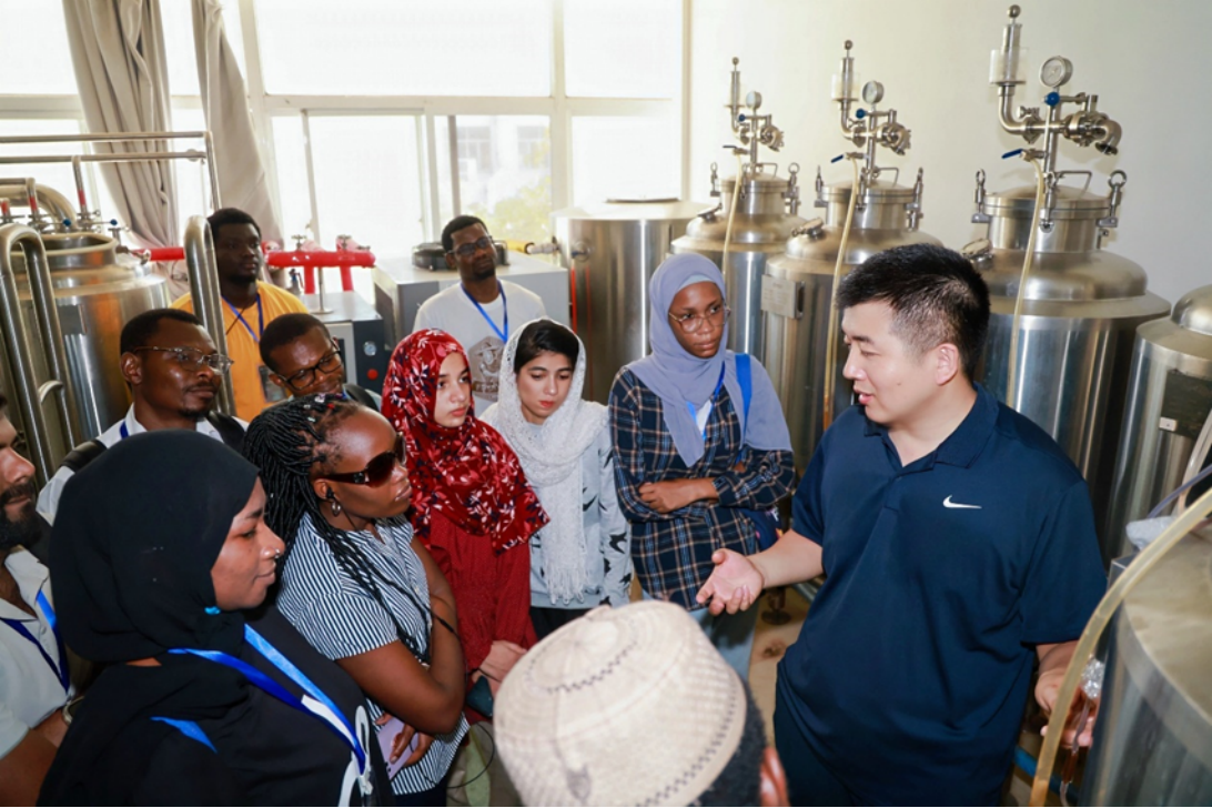 In the beer brewing pilot laboratory, the students learned about key brewing processes such as malt saccharification, fermentation, filtration, and maturation. Through on-site demonstrations and smart equipment displays, they observed how traditional brewing techniques are being integrated with digital and intelligent control systems. A student from Serbia remarked, “This is very different from the traditional brewing methods in my country. The technology here makes the process much more precise and efficient.”