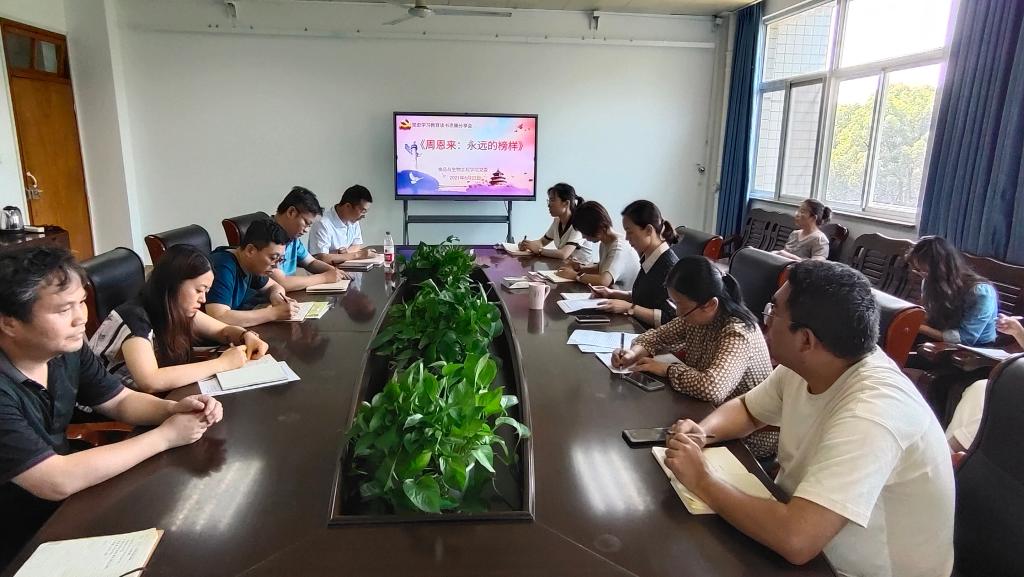 为持续推进党史学习教育走深、走实,传承弘扬周恩来总理的革命精神和高尚品质,食生学院党委于6月22日举办2021年度第二期读书思廉分享交流会,本次交流的主题是“学习楷模精神 传递百年初心”——《周恩来:永远的榜样》。学院领导班子、党委委员、全体行政管理人员以及部分周恩来班的学生党员参加了此次学习交流,分享会由院党委书记万由令主持。