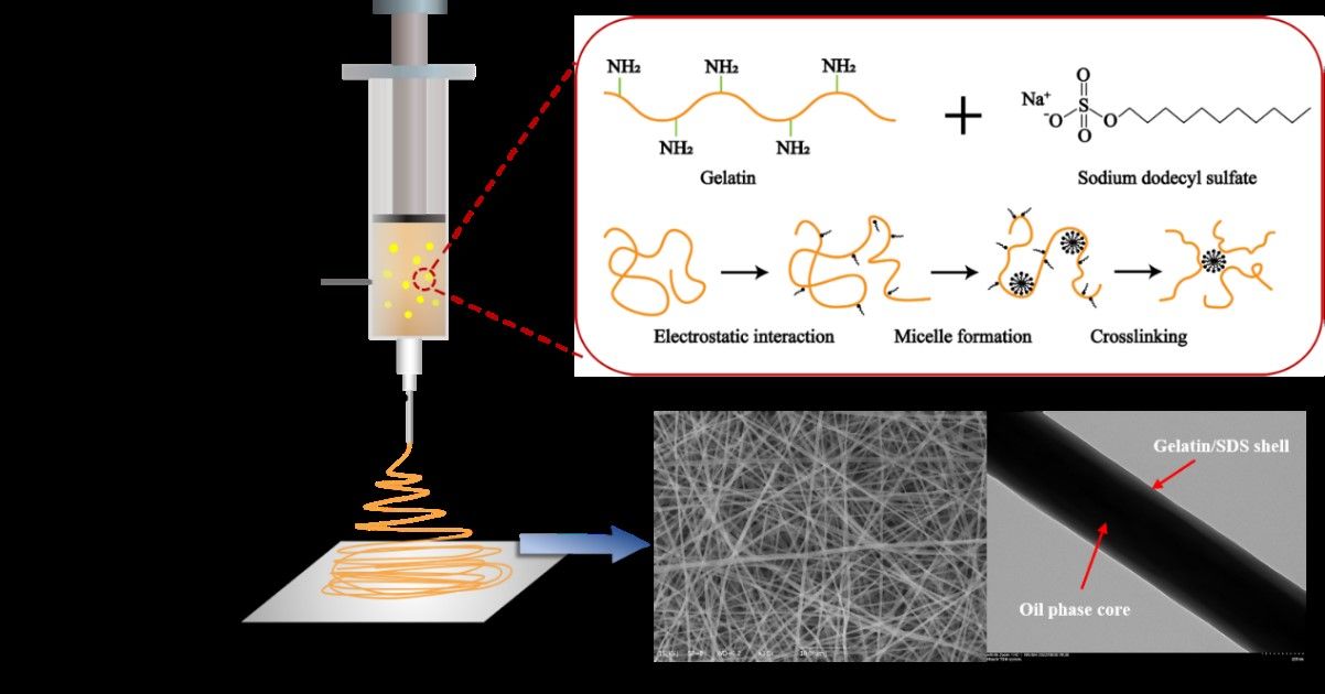 近日,我院林琳教授课题组在食品领域一区Top期刊Food Hydrocolloids(影响因子10.7)期刊上发表了题为“The improvement of sodium dodecyl sulfate on the electrospinning of gelatin O/W emulsions for production of core-shell nanofibers”的研究论文。系统研究了十二烷基硫酸钠(SDS)在明胶乳液静电纺丝开发核壳纳米纤维载体中起到的关键作用,并对其作用机理进行了讨论。永利集团2019级博士生戴锦铭为论文第一作者,yl9193永利集团林琳研究员为通讯作者。