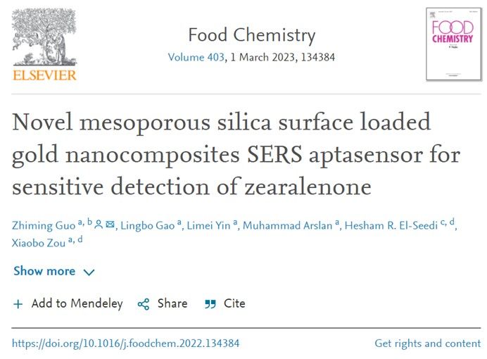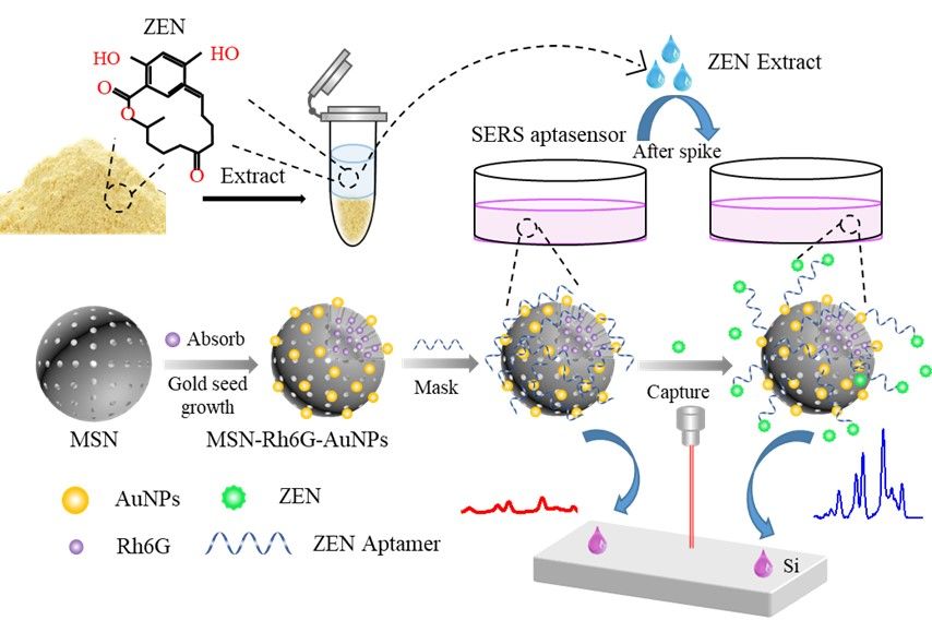 近日,我院郭志明教授课题组在Food Chemistry (Q1)期刊上发表了题为"Novel mesoporous silica surface loaded gold nanocomposites SERS aptasensor for sensitive detection of Zearalenone"的研究论文。论文第一/通讯作者为郭志明教授,第二作者为硕士研究生高凌波,论文第一单位为永利集团,瑞典乌普萨拉大学Hesham R. El-Seedi教授参与论文工作。