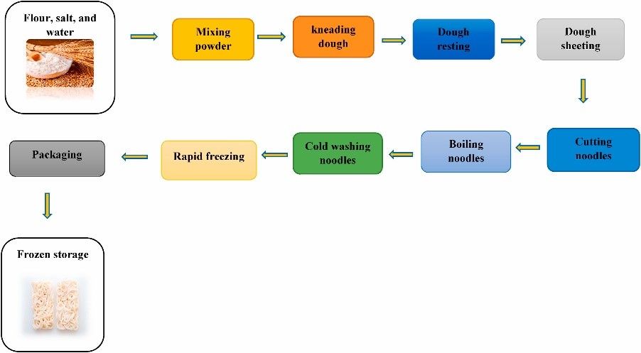 近年来,随着人们活动和生活水平的改变,冷冻熟面条(FCN)作为新一代即食面条,获得了人们越来越多的关注。然而,冷冻熟面条在工业生产中易于冷冻变质,对面条的品质和可接受度造成负面影响。而且,我们对影响FCN工业生产中品质下降的因素了解较少。在本综述中,作者对FCN的原料、添加剂、生产和熟制方法和熟制后技术进行了概述,同时也对每个因素对FCN品质的影响进行了讨论。