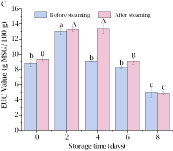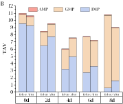 图3 冷藏过程中盐渍鲈鱼的有机酸(A)、5'-核苷酸(B)的味觉活性值和等效鲜味浓度值(C)