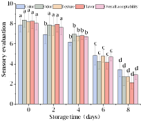 图2 冷藏过程中盐渍鲈鱼清蒸后的感官评价