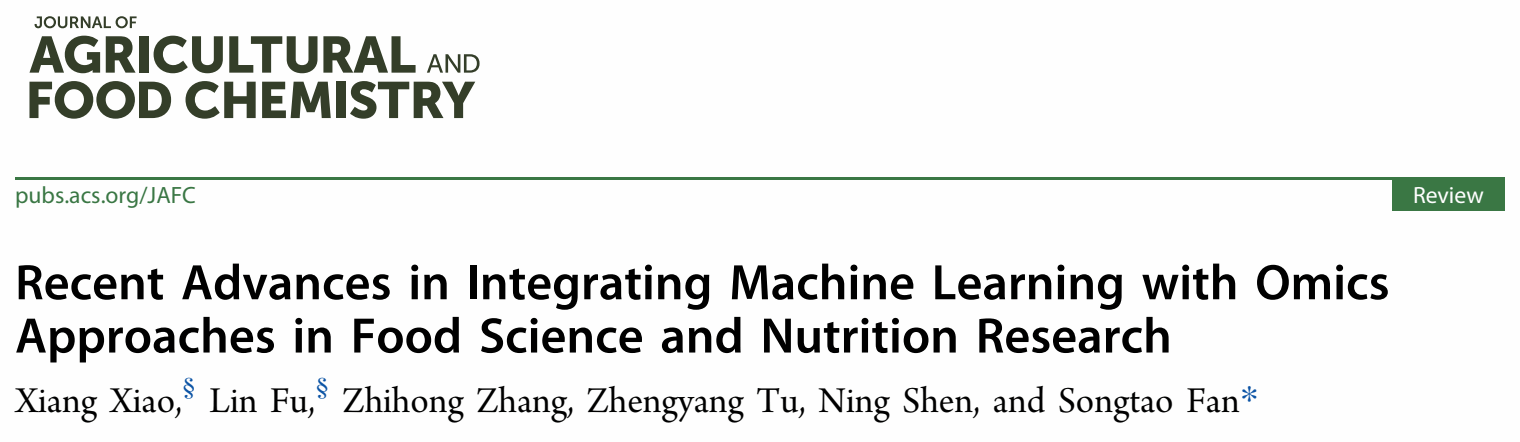 近日,我院肖香教授、范松涛讲师在Top期刊《Journal of Agricultural and Food Chemistry》(Q1,IF2024:6.2)上发表综述论文“Recent Advances in Integrating Machine Learning with Omics Approaches in Food Science and Nutrition Research”。