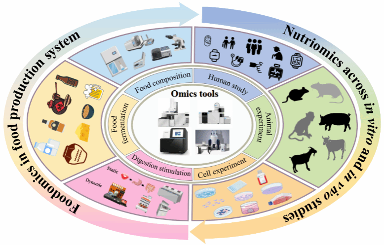 组学技术通过高通量解析食品成分与微生物群落,系统揭示其与人类健康的复杂关联,正引领食品与营养研究的范式变革。机器学习已成为高通量组学数据的分类、聚类、降维及模式识别分析的关键工具,在食品加工、安全和营养干预预测方面展现出独特价值。本文系统探讨了食品和营养研究中的基因组学、转录组学、蛋白质组学、代谢组学和多组学(图1),以及经典机器学习、深度学习和人工神经网络算法的应用。机器学习与组学相结合的核心优势在于解析复杂数据集以赋能食品质量评估与精准营养干预,但仍面临数据质量、模型可靠性和可解释性等挑战。