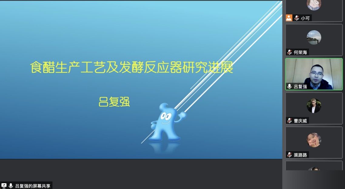 近日,由yl9193永利集团举办的“产业教授进校园活动”顺利举行,本次会议邀请江苏省产业教授、江苏恒顺醋业股份有限公司企业管理部部长吕复强做 “食醋生产工艺及发酵反应器研究进展”的专题报告,报告通过腾讯会议直播。食品物理加工研究院常务副院长何荣海教授主持会议,yl9193永利集团100余名师生线上参与学习。