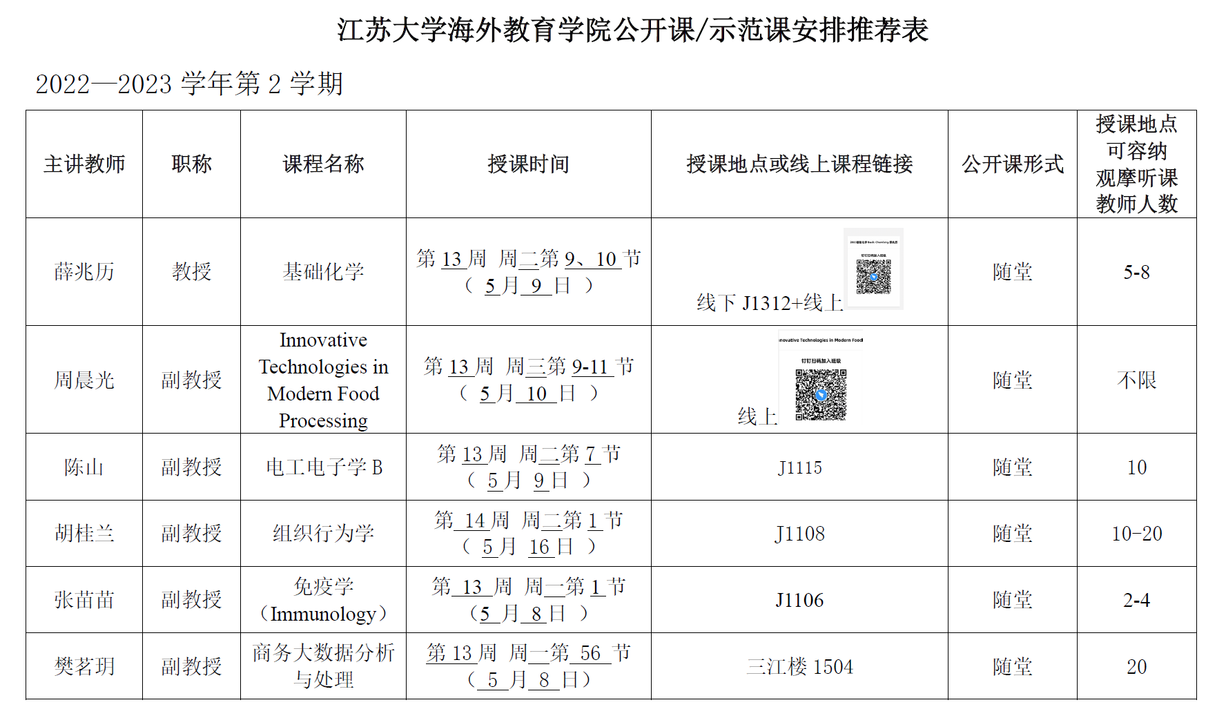 为响应海外教育学院(以下简称海院)号召,促进学院教师全英文教学能力与水平的提升,近期yl9193永利集团动员、组织教师在线上或线下观摩海院英文公开课。海院英文公开课安排如下图所示: