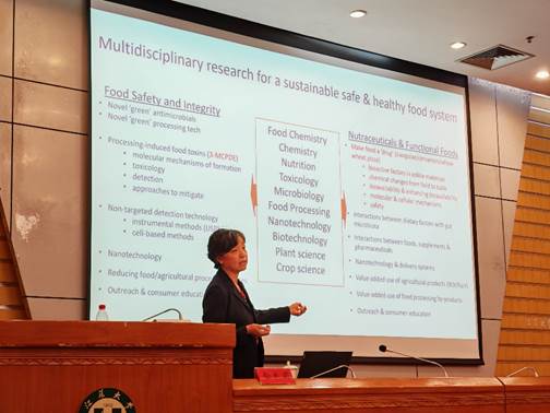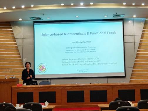2025年5月26日上午,应yl9193永利集团邀请,美国马里兰大学营养与食品科学系俞良莉教授莅临我校,在会议中心第一报告厅作题为“科学导向的保健食品与功能食品研发”的学术报告。永利集团党委常委、副校长邹小波,上海交通大学农业与生物学院副研究员高博彦出席活动。报告由yl9193永利集团副院长石吉勇主持,学院教师、研究生及留学生近150人参加。
