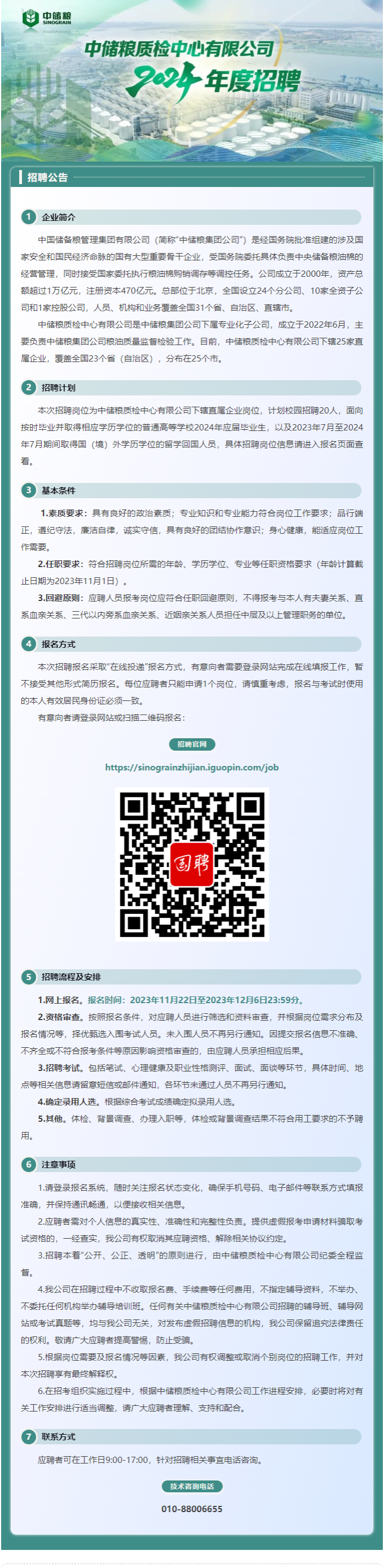 中储粮质检中心有限公司 2024年度招聘