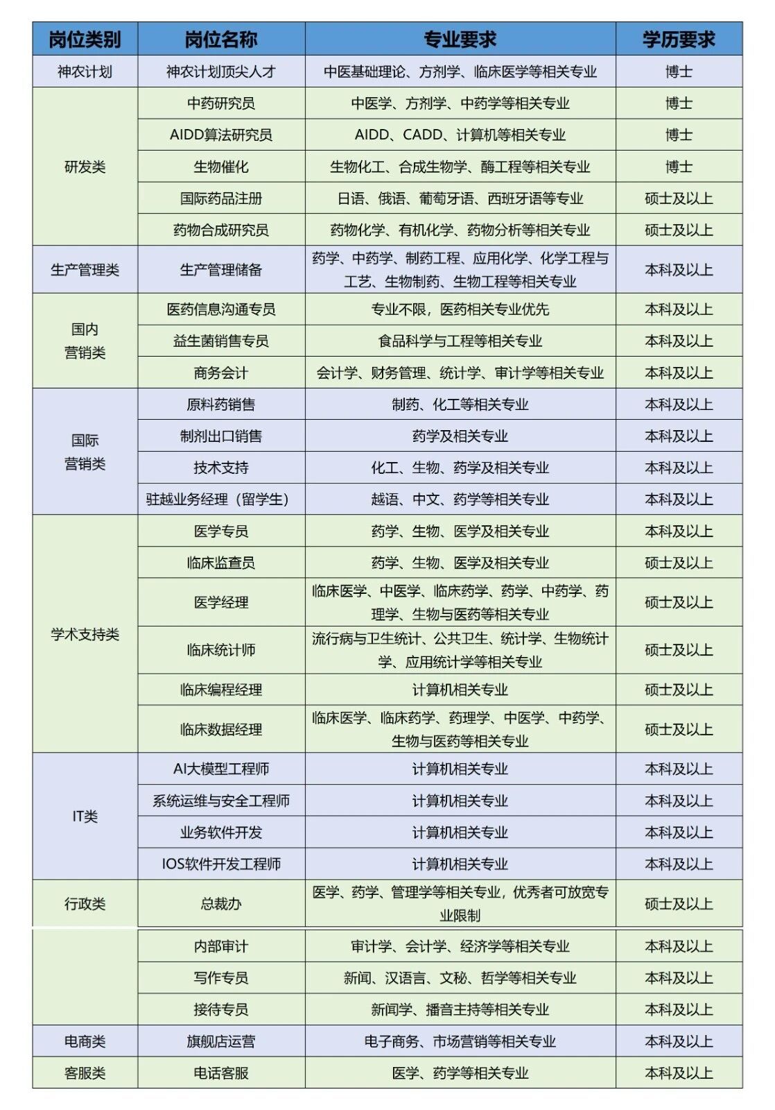 1.在2025年7月至2026年7月期间毕业的海内外应届生,营养学、食品科学、中药学、药学、医学、生物工程等相关专业,硕士及以上学历;