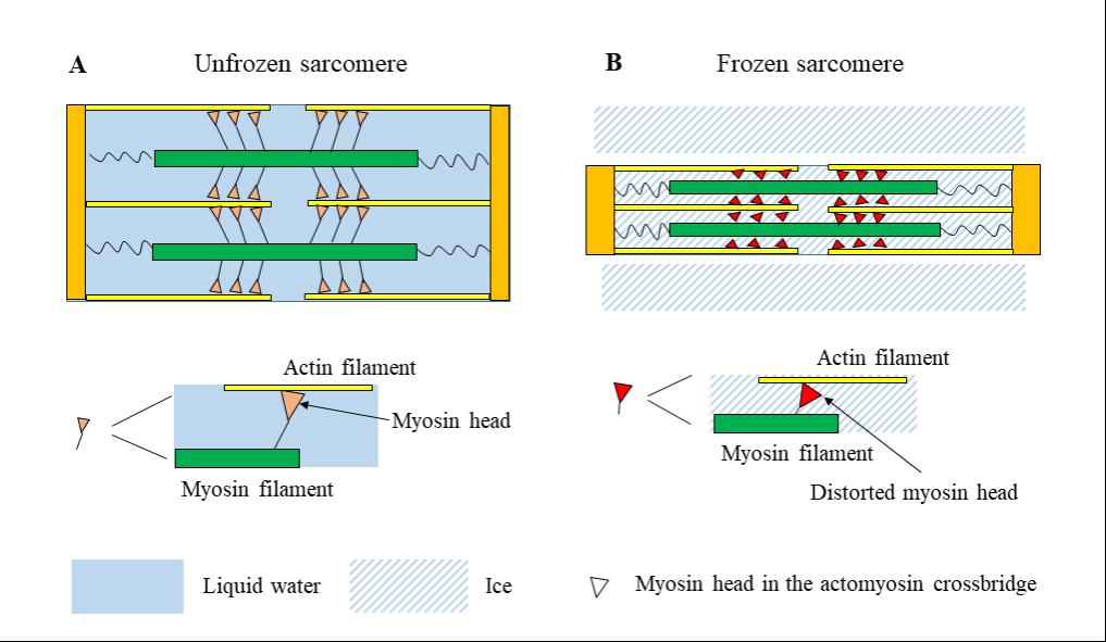 肌肉源食材中,蛋白质氧化可能导致食用品质和营养价值的降低,因此,蛋白质氧化是近年来食品领域关注的热点之一。冷冻是生鲜肉类及水产品常见的保存方式,冷冻/解冻过程也会导致肌肉蛋白质的氧化。为了更好地控制冷冻肉制品及水产品中的蛋白质氧化,需要深入探究冷冻造成蛋白质氧化的可能机理。
